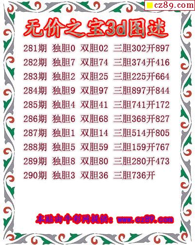 无价之宝送胆2025290期3d图谜(原创)