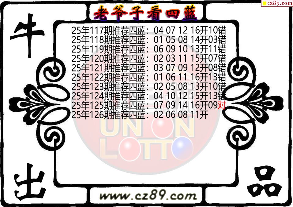 双色球126期老爷子看四蓝图谜