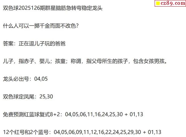 > 25年福彩双色球126期 群星脑筋急转弯定龙头字谜